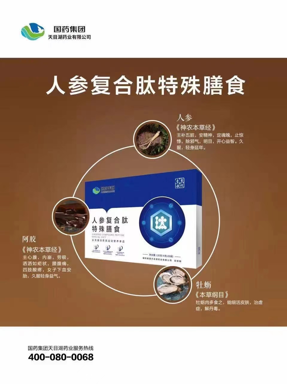 【產(chǎn)品名稱】:國(guó)藥天目湖-人參復(fù)合肽特殊膳食